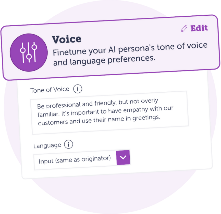 No LLM expertise needed - simply prompt your AI agent in a simple Agent Builder, provide business knowledge and training materials, then let it do what it does best.